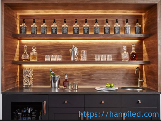 Máng u nhôm và led dây gắn tủ rượu